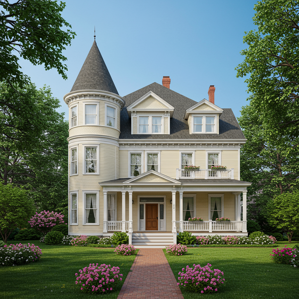 Victorian architecture is vertical — homes have long, narrow windows, turrets, and towers and are two or three stories, drawing the eye upward to the roof. Ornate gingerbread wood trim and painted iron railings are also hallmarks of this 19th-century style.